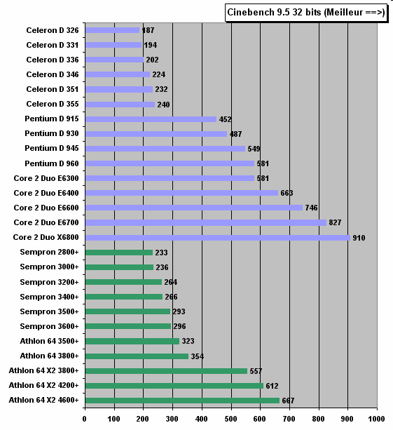 Fonctionnellement, le processeur est la partie d’un ordinateur qui exécute les opérations arithmétiques et logiques contenues dans les programmes, ces derniers composent la partie logicielle de cet ordinateur. On mesure la vitesse (fréquence d’un processeur en hertz) aujourd’hui en gigas hertz. La gravure d’un processeur (de l’ordre du nanomètre) est elle aussi très importante car elle permet une meilleure dissipation thermique. Le cache (L1 et L2) en KB Afin d'accroitre ses performances on peut l'overclocker c’est à dire le faire fonctionner en sur fréquence, on peut grâce à cela avoir un gain de performance allant de 10 à 20 % Cependant il y a des risques de griller le processeur par l’application d’une tension d’alimentation trop importante ou bien avoir un instabilité avec l’apparition de bugs et autres. Pour overclocker un processeur il n’y a pas de solution miracle, il faut depuis le bios augmenter progressivement le FSB du processeur et effectuer des essais réguliers pour vérifier que l’ordinateur ne plante pas, il faut ensuite augmenter légèrement le voltage alimentant le processeur afin de limiter les plantages, mais il y a un risque d’échauffement plus rapide. Comparatif de différents processeurs :
