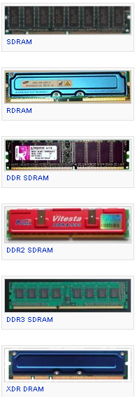 On distingue les types de mémoire vive dynamique suivants :
